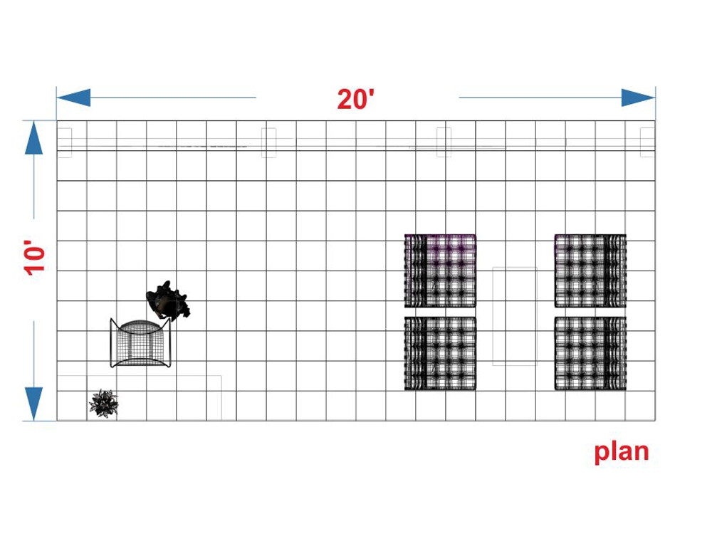 This 10x20 modular exhibit features a sophisticated design with a distinctive purple graphic wall and an integrated digital screen for dynamic presentations. A plush lounge area with comfortable chairs and a low table invites extended discussions. The booth includes a modern reception counter and vibrant, brand-aligned accent graphics, all on a dark wood-effect floor.